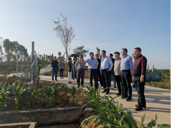 鄧華一行首先參觀了青白江區楊氏果園種植基地,在地勢高點總覽了附近地勢地貌,聽取了關于青白江區農業發展的情況報告,了解了青白江區農業遠景規劃與青白江區區位優勢,并詳細詢問了當地土地情況與農業政策。隨后,參觀了青白江港城大道沿線、蓉歐班列鐵路園區糧油周邊種植區域,聽取了青白江區農業農村局相關人員的匯報,并就棉麻集團在仁壽、中江打造糧油基地的情況進行了交流,探討了在青白江開展合作的可能性。最后,還參觀了青白江區“我的田園自然王國”項目,實地考察了當地農業一三產業融合情況。